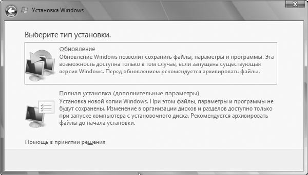 Рис. 2.6. Выбор между новой установкой и обновлением
