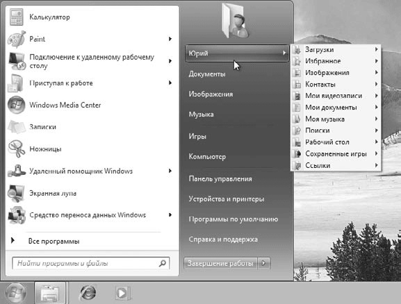 В папкеC:\Пользователи\Имя пользователя\AppData\Roaming\ Microsoft\Windows\Главное меню содержатся ярлыки, которые будут появляться в меню Все программы конкретного пользователя.