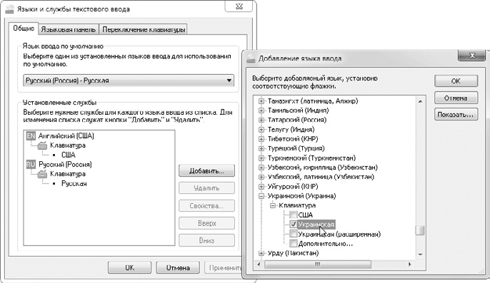 2. В появившемся окне нажмите кнопку Добавить, после чего выберите нужный язык и раскладку клавиатуры из древовидного списка (рис. 3.37).