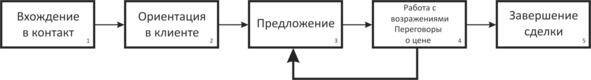 Поэтому, когда продавец сталкивается с подобными вещами, он вынужден «откатываться» назад по циклу. Очень часто происходит ситуация, показанная на рисунке ниже: услышав возражение, продавец тут же начинает делать другое предложение (идти на уступки, предлагать другую комплектацию, добавлять бонусы и пр.).