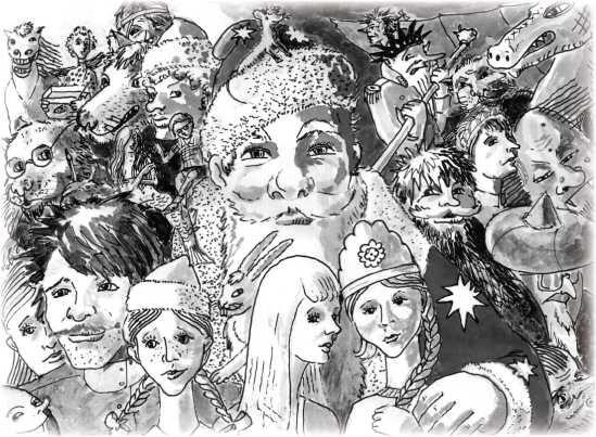 А вот в Царстве Зла проживают персоны, которых и героями-то назвать язык не поворачивается, потому что творят они, как легко догадаться, только зло: это Царь Кощей (по кличке Бессмертный), Змей Горыныч и его братан Тугарин Змей, Соловей-разбойник, знаменитый колдун и вор Черномор, злая Баба Бабариха, Баба-Яга в компании с лешими, вурдалаками, оборотнями и кикиморами, Вий с ведьмой Панночкой, тьма-тьмущая чертей, бесов и других злодеев помельче.