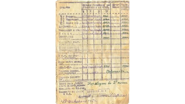 Учебный табель 1941-42гг. на обёрточной бумаге.