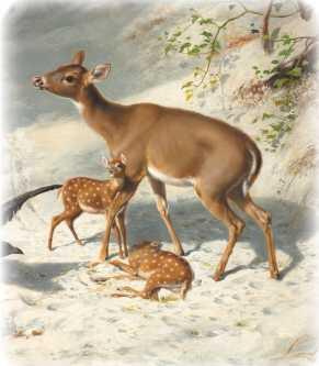 Зимой олени обыкновенно тощают, потому что с большим трудом должны добывать себе скудную пищу, раскапывая снег и копытами пробивая ледяную кору, плотно одевающую землю после осенних дождей. На лето олени, водящиеся у обывателей наших северных владений, целыми стадами переселяются с хозяевами своими к югу, чтобы спастись там, в более гористых местах и отчасти в лесах, от страшных врагов своих комаров и оводов. Весной и рано летом овода обыкновенно целыми роями летают над стадами оленей и, садясь к ним на спину, кладут в их густую шерсть свои яйца, величиной с горчичное зерно. Из этих яиц скоро выходят червячки, которые, отыскивая пищу, пробуравливают кожу оленей и углубляются в их тело, от чего вся спина оленей покрывается большими желваками, имеющими на вершинке своей небольшие отверстия. От нестерпимого зуда олени расчесывают себе всю спину до крови, большую часть дня проводят в воде, куда заходят по самую шею, отказываются совершенно от корма и часто умирают. В теле животного червячок мало-помалу превращается в личинку, вырастает до величины желудя и вываливается через устьице на землю, зарывается в нее и через несколько недель вылетает уже оводом.