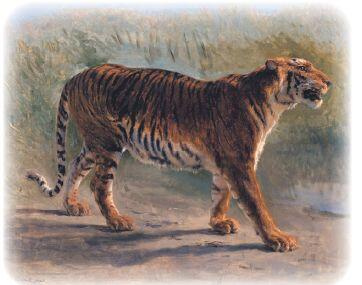 Тигр самое страшное и самое злое из всех хищных животных. Он бывает красновато-желтого цвета, с черными полосами. В длину он тоже иногда достигает сажени, но в вышину несколько меньше льва. Он необыкновенно ловок, быстр, делает огромные прыжки и нападает на всех животных, не исключая и человека, не только голодный, но и сытый.