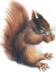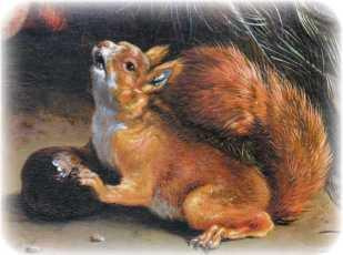 Клыков у белки вовсе нет, и там, где они бывают у других животных, остается довольно значительный промежуток, за которым в обеих челюстях и по обе стороны помещены плоские коренные зубы с бугорками, для перемалывания изгрызенной пищи. Зубы у белки, как и у других, подобно ей, грызущих животных, обладают замечательным свойством: стираясь от беспрестанного употребления, они беспрестанно нарастают вновь. Если белку долго держать в клетке и не давать ей ничего грызть, то зубы у нее так вырастут, что она не будет в состоянии сложить их. Устройство челюстей и зубов белки ясно показывает, что ей суждено не рвать, не кусать и не глотать целиком, а грызть свою пищу, и в самом деле, как вы, вероятно, заметили, белка прогрызает скорлупу самого твердого ореха с необыкновенным проворством и потом принимается также грызть и зерно.