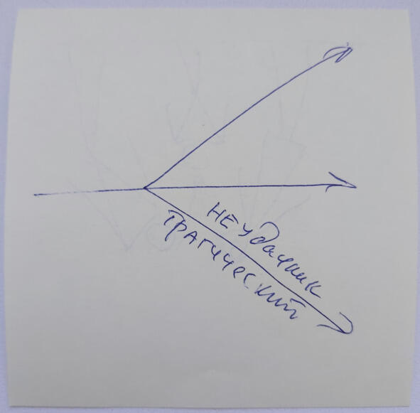 Рис.2 про заданный ребенку жизненный сценарий «неудачник» с трагическим финалом. А именно в этом сценарии живут зависимые люди. Вам нужно выполнить хотя бы часть рекомендаций. Чем больше рекомендаций тем более круче угол вниз и скорость устремления ребенка к сценарной расплате.