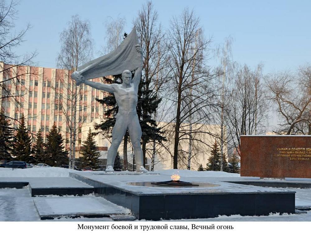 Вечный огонь на Карлутской площади был зажжён в канун 50-летия Октябрьской революции 6 ноября 1967 года. И тогда же был открыт Монумент боевой и трудовой славы.