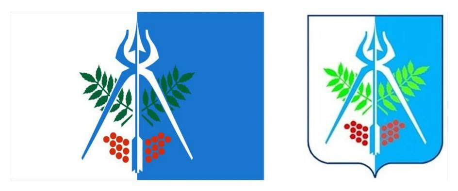 На гербе Ижевска изображены клещи, стрела и гроздь рябины.