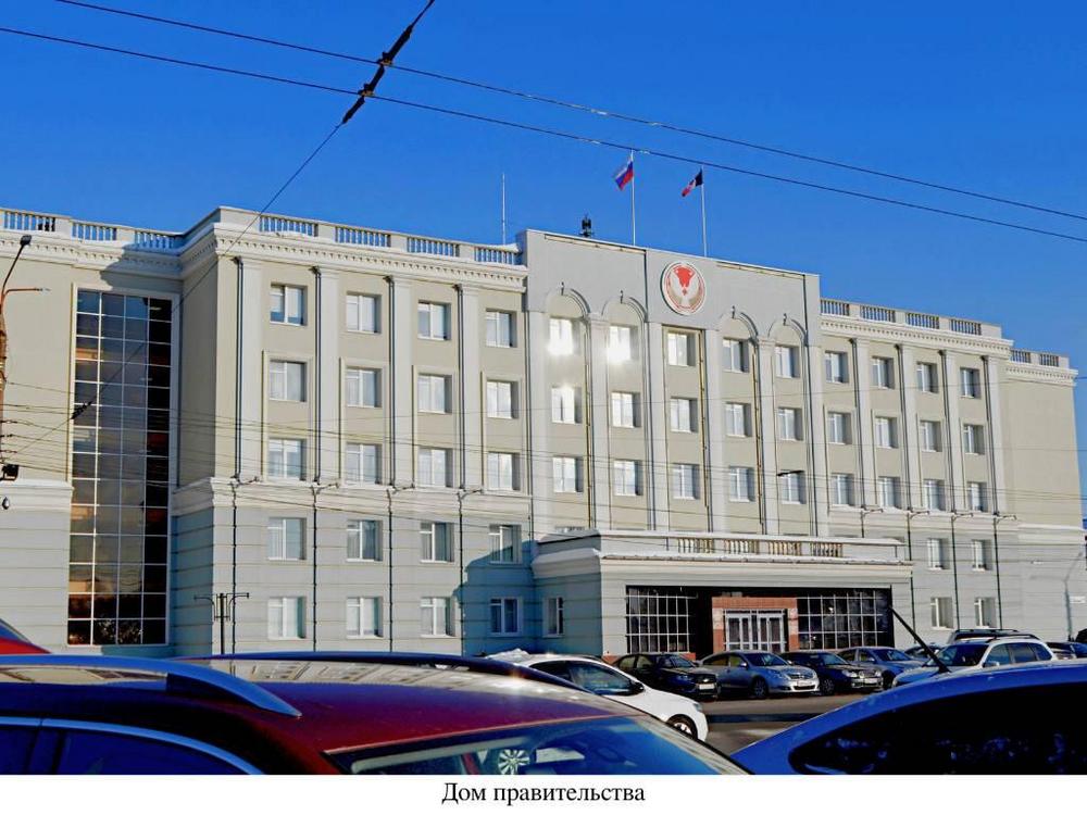 Справа увидим Дом правительства, построенный в 1961-1964 годах по проекту архитектора Василия Орлова. Он был и одним из авторов ансамбля «сталинских» домов на Пушкинской. Вплоть до 2000-х годов дом этот выглядел не слишком презентабельно обычная коробка без всяких украшений. После провели небольшую реконструкцию, появилось крыльцо, балясины на крыше и т.д., и здание преобразилось.