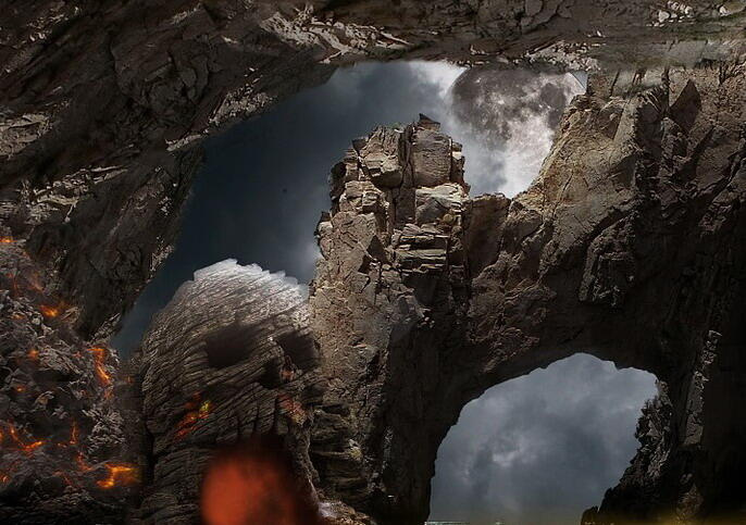 Генри быстро отыскал две крепкие ветки, обмотал их паклей и поджег. Один самодельный факел он отдал Лике, а другой оставил себе. Поставив корзинки с едой у входа в пещеру, наши герои зашли внутрь. Все потолки и стены пещеры были, буквально, покрыты толстым слоем паутины. Сверху свисали завернутые в паутинные коконы птицы, мелкие зверьки и даже летучие мыши.