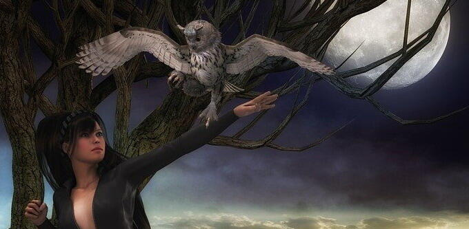 Она уже собралась пойти в постель, как вдруг, что-то большое и темное ударилось снаружи о стекло и сползло на подоконник. Это был филин!