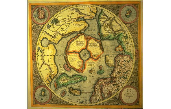 Главное для нас то, что Сказы содержат сведения, которые прямо говорят о существовании Северной земли, о происшедшей с ней катастрофе и переселении с той земли людей в южном направлении. Обращает на себя внимание упоминание горы Меру, сведения о которой имеются в легендах разных народов. В частности, в ведийской литературе, где отмечается, что пришедший к индийцам народ и ставший создателем нового индийского общества, жил в полуночной стране, на севере, у этой горы Меру. Пришедший к индийцам народ назывался ариями, что можно соотнести с названием Оразской земли Сказов: Оразская земля Орази3 Арази Ари Арии. По Сказу однозначно видно, что Русы-Орази переселились с Северной земли, и руководил ими легендарный Сварог, который стал одним из главных богов у ведических народов. Абсолютно все документальные источники белых народов указывают, что изначально люди появились на материке, находящемся на севере, который в разных источниках называется по-разному: Арктида, Сиверия, Арияна4 и т. д. Изображение очертаний этого континента, состоящего из четырёх больших островов, сохранилось на стене одной из пирамид в Гизе. В 1595 году карта с изображением этих островов была опубликована Рудольфом сыном Герхарда Меркатора (рис. 1). Освещение вопроса об имеющихся картах Северной земли представлено в работе «Откуда ты, белый человек?».