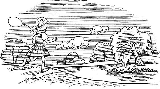 Очень довольная собой, Бетси торопилась к реке, а следом за ней на ниточке по воздуху летел синий воздушный шарик.