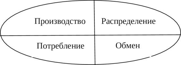 Общественное производство представляет собой замкнутый цикл деятельности, который включает в себя четыре фазы: производство, распределение, обмен и потребление (Рис.2.1.).