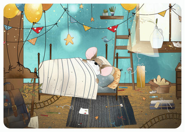 Сейчас, мышонок крепко спит- он очень устал, вчера, он отпраздновал свой день рождения, один из самых чудесных и долгожданных праздников.