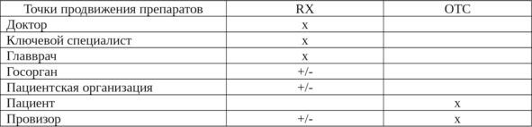 Следующим шагом было предложено поразмышлять и обсудить важность тех или иных каналов для разных направлений этой компании. Была составлена таблица, в которой первый столбец заняли отмеченные ранее каналы продвижения препаратов, второй столбец был озаглавлен RX, третий столбец был озаглавлен ОТС.