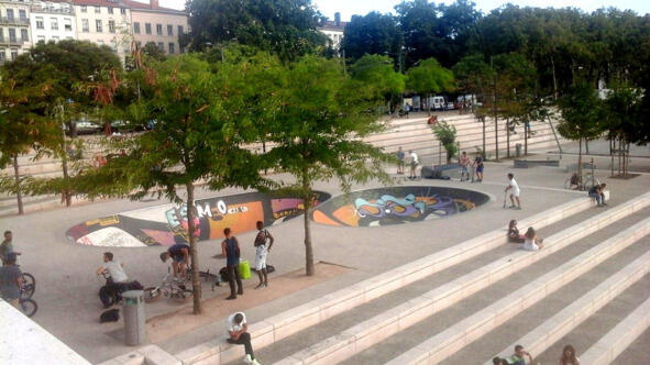 Сразу за мостом уютная прогулочная зона со скейт-парком, в котором экстремалы удивляют прохожих своими трюками на скейтбордах. Чем дальше мы удалялись от сердца Лиона, тем заметнее проявлялся переход от роскоши старинного города к безликим современным кварталам. Однотипные многоэтажки, однообразная архитектура 70-х входила в резкий контраст с изысканной красотой и богатством исторического центра Лиона.