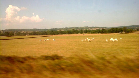 За окном пролетали ухоженные французские поля, нарезанные аккуратными наделами, у каждого свой хозяин, бережно и с максимальной выгодой использующий собственную землю. На французских лугах пасутся белые коровы. Удивительно, но все коровы, которые попадались нам по пути из Парижа в Лион, были исключительно белыми! Непривычно. Только здесь я поняла, что российских коров потому и прозвали бурёнками, что они, в основном, бурой масти; коричневые с красноватым или сероватым отливом, либо пятнистые.