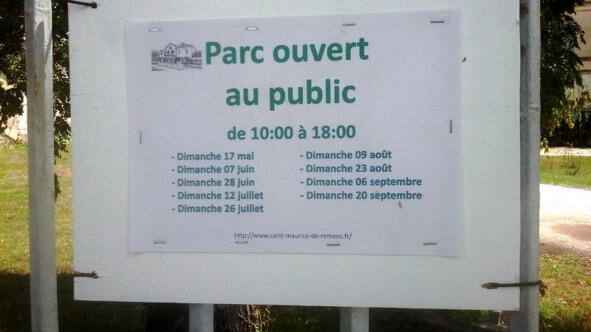На металлической ограде, слева, висел белый прямоугольник из фанеры, с закреплённым на нём плотным листом бумаги с графиком посещения усадьбы для всех желающих. Оказалось, дом открыт для посетителей с 17 мая 2015 года. (Приедь мы в прошлом году, о его посещении не могло бы идти и речи). Ивонна, глядя на график, пояснила: дни посещений в августе только два воскресенья, 09 и 23. Мы же приехали в субботу, 15-го августа, потому усадьба оказалась закрытой.