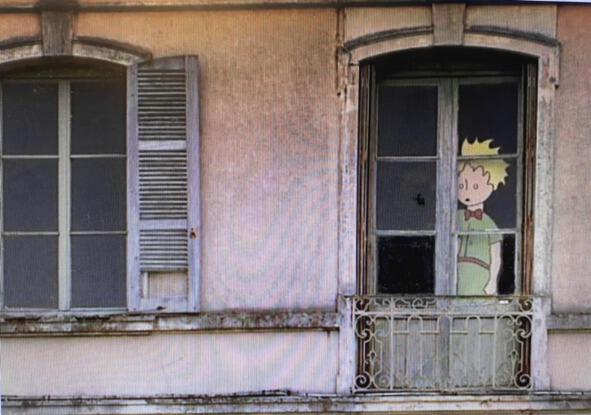 Ну, сказала Ивонна, тогда смотрите внимательно по сторонам. Мы проехали одно, второе, третье строение и вдруг, справа от дороги, я увидела знакомое мне по картинке здание, но не со стороны паркового фасада, как на картинке, а со стороны двора. Через стеклянную дверь второго этажа на нас смотрел Маленький принц с копной волос пшеничного цвета! Его макет скопировали с рисунка Сент-Экзюпери и установили как маяк для тех, кто, как и мы, ищет этот дом. К горлу у меня подкатил комок.