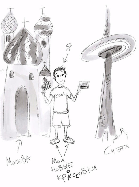 Вы думаете, это классно, когда ты и русский, и американец одновременно. Можно собрать лучшее из двух великих культур, да и языка два. Но в жизни всё по-другому в Америке я русский, а в России я американец. Английский в школе догонял, года три ходил на ESL English Second Language программу, потому что до школы дома говорил только по-русски. Все на перемене играют на детской площадке, а ты эх, английский учишь.