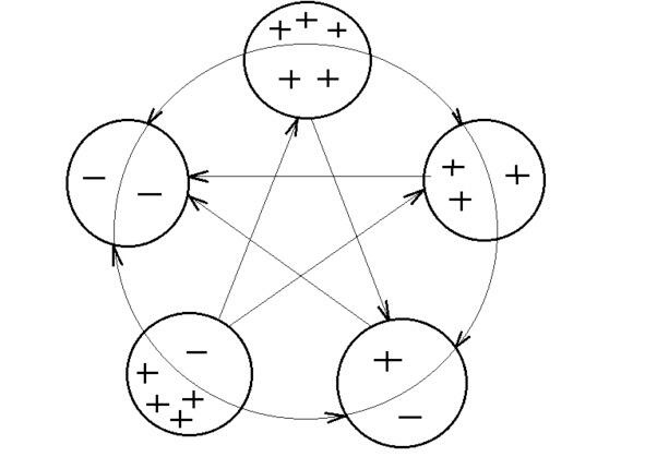 Такова сущностная характеристика определяющей энергии знаков У-Син. Это главный, постоянно присутствующий энергетический потенциал, с которым люди, принадлежащие тому или иному знаку взаимодействуют между собой, который в ситуациях жёсткого выбора определяет глубинную линию поведения того или иного человека.