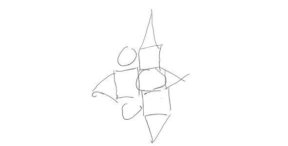 The characters in his drawings are not all standard. In response to the proposal to continue drawing after the first one was made, he gave almost abstract compositions from the given standard elements: squares, circles and triangles. The third figure in this series was subsequently decoded (Fig. 1). It turned out that it echoes the dream, which was the starting point for one of the episodes of the work. It depicts a sprawled man. «Two holes in him, in and out.»