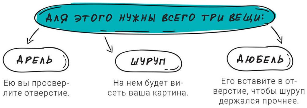 Проще всего рассказать на примере. Допустим, вы хотите повесить на стену картину или полку.