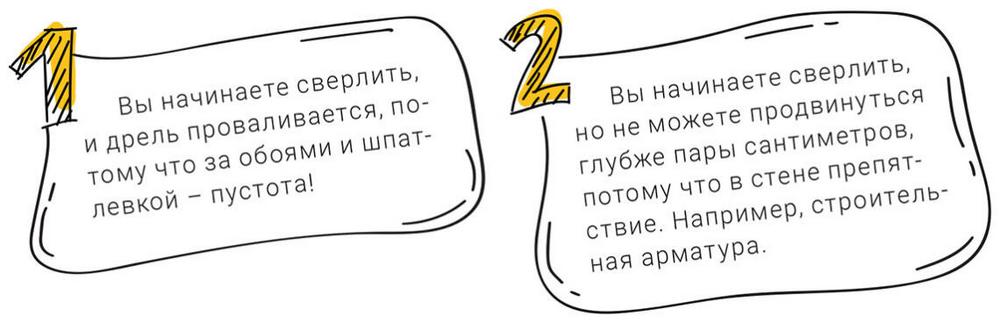 Можно, например, натолкать в отверстие использованные спички: дерево разбухнет, и дюбель будет держаться даже в слишком большом отверстии. Можно заполнить отверстие специальным быстрозастывающим бетоном он заполнит пустоту и удержит дюбель. Можно, в конце концов, не сверлить, а приклеить картину к стене! Решений множество: десятки или даже сотни.
