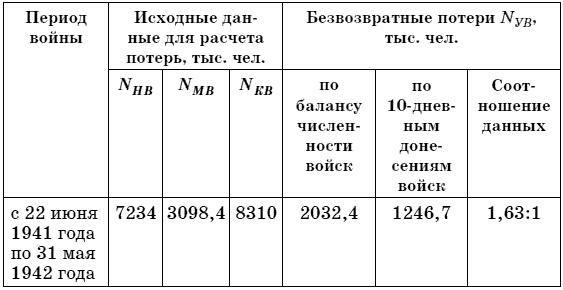 В-восьмых, следует иметь в виду, что содержание категории «раненые» в 10-дневных донесениях немецких войск не совпадает с содержанием такого же понятия в донесениях советских войск. О численности раненых за период с 01.09.1939 по 31.01.1945 доктор П. Е. Шрамм писал в предисловии к Приложению к дневнику военных действий Верховного главнокомандования вермахта: «В отношении раненых следует иметь в виду, что здесь дело идет лишь о лицах, проходивших курс лечения в стационарах», т. е. учтены лишь раненые, включаемые в категорию «убыль». Сведения табл. 1.7 показывают, что численности раненых, приведенные в различных других справках вермахта, в том числе и в 10-дневных донесениях армий и других объединений сухопутных войск вермахта, включают не всех раненых, а только направленных в тыловые госпитали.