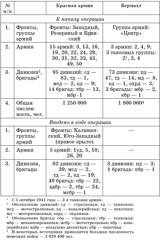 Характеристика боевого состава и численности войск в Московской оборонительной операции