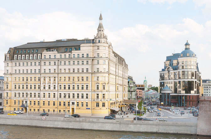 Слева гостиница «Балчуг Кемпински» (Балчуг ул., 1); справа здание Центробанка (Балчуг ул., 2).