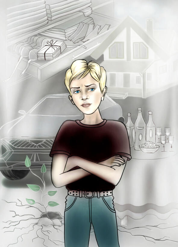 Вовка разрешил себе не учить уроки, не обращать внимания на слова родителей, игнорировать «того мужика» и к концу вообще объявил голодовку. Правда, его подкармливала Настька, принося мандарины в ладошках. Мать хотела повести Вовку к другому психологу и даже на разговор к директору школы, но Вовка отказывался вставать с постели. Роман, отец Настьки, по просьбе матери, попытался силой свести Вовку к врачу, даже большими мужскими руками втащил его себе на шею. Но к девяти годам Вовка вырос в настоящего богатыря или «кабана», как выразился отчим, и его только КАМАЗ или наряд полиции смогли бы сдвинуть с места.