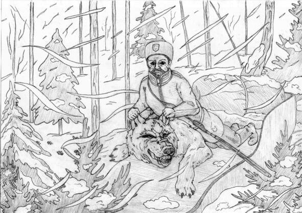 Умелым охотником на медведей считался Владимир Алексеевич Гиляровский, родившийся в глухом лесном хуторе за Кубенским озером. За храбрость в войне с турками он был награжден солдатским Георгием, а за участие в Олимпийских играх Большой золотой медалью. Но больше всего гордился этот человек тем, что, не страшась, ходил на медведей. Репин писал с Гиляровского одного из своих запорожцев, а Андреев лепил с него фигуру Тараса Бульбы для памятника Гоголю в Москве.