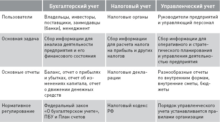 Анализ сходств и различий между различными видами учета был бы неполным без упоминания о налоговом учете (табл. 15).