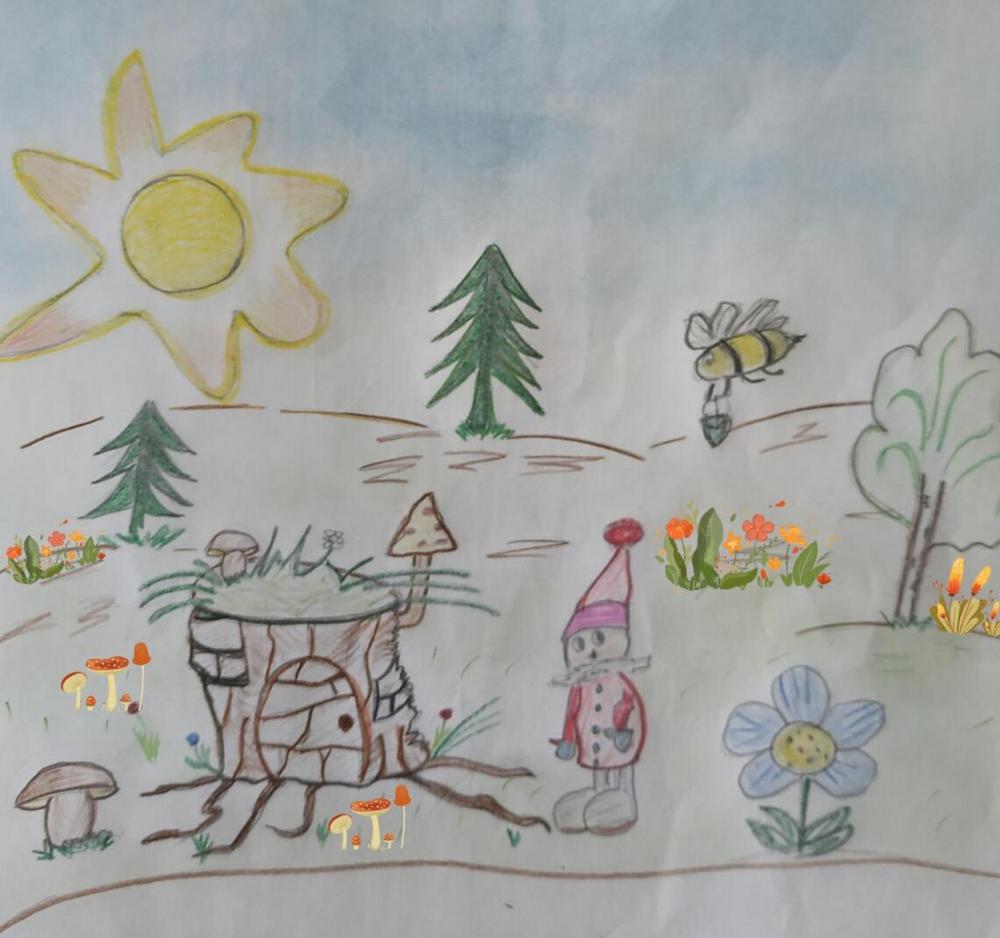 Здравствуй, Жужа, а я гном и зовут меня Максик, я живу здесь, в горах. У меня нет семьи и нет друзей, много лет я живу один. Давай дружить! Прилетай, и мы будем пить чай, ты будешь рассказывать мне истории о своём доме, а я угощать тебя моим любимым вареньем.