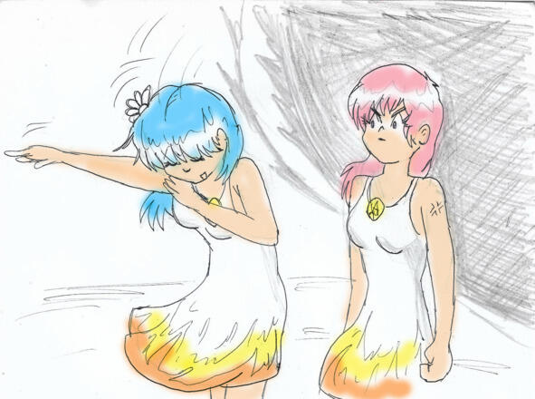 Вслед за первой из портала вышла и вторая девушка, одетая точно так же. Она поправила голубые волосы длиной до плеч и так же обратилась к властителю местных земель: