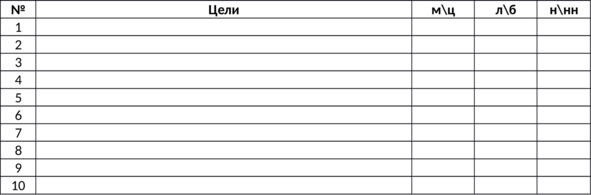 Не заканчивай этот шаг до тех пор, пока не заполнишь всю таблицу все 100 целей.