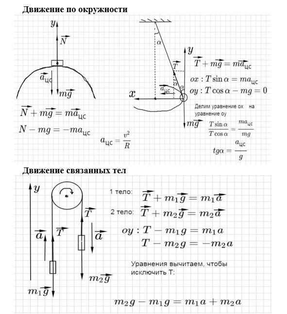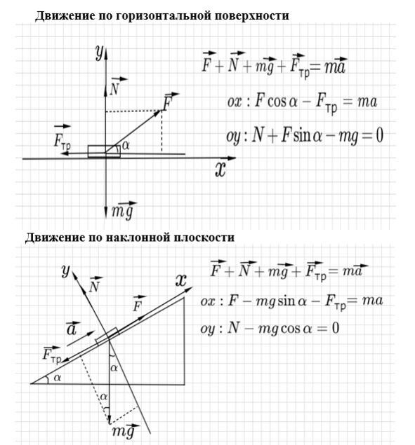 Так должны выглядеть чертежи к типовым задачам на II закон Ньютона: