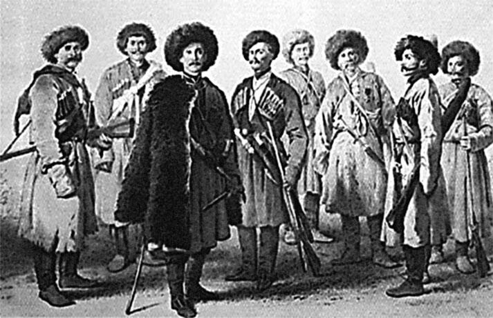 В полку были винтовки старого образца, системы Карле, с бумажными патронами, которые при переправе через реку намокали и в ствол не лезли, а у нас легкие берданки с медными патронами, 18 штук которых я вставил в мою черкеску вместо серебряных газырей. Вместо сапог я обулся в поршни из буйволовой кожи, которые пришлось надевать мокрыми, чтобы по ноге сели, а на пояс повесил «кошки» железные пластинки с острыми шипами и ремнями, которые прикручивались к ноге, к подошвам, шипами наружу. Поршни нам были необходимы, чтобы подкрадываться к туркам неслышно, а «кошки» по горам лазить, чтобы нога не скользила, особенно в дождь.