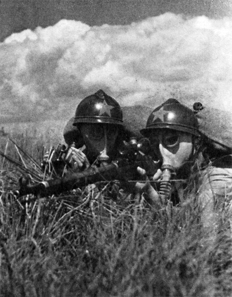 Снайперский расчет РККА отражает «химическую атаку» противника. Маневры 1934 г.