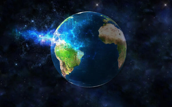 На фоне черного космоса, с точками звезд, виднелась наша планета, очертания материков, местами закрытые облаками!