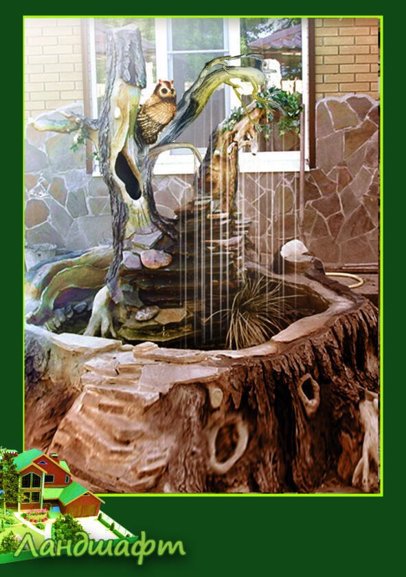 Мини-бассейн в срубе гиганта ствола и струи «дождя» из веток-артерий.