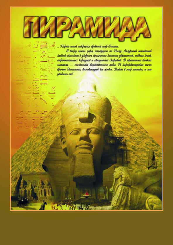 «Передо мной открылся древний мир Египта. Я вижу юного фараона, плывущего по Нилу. Лазурный солнечный зайчик скользит в узорном орнаменте золотых украшений гибких змей, стремительных коршунов и священных скарабеев. В трепетных бликах металла символика божественного лика Войди в мир легенды, и ты увидишь его!»