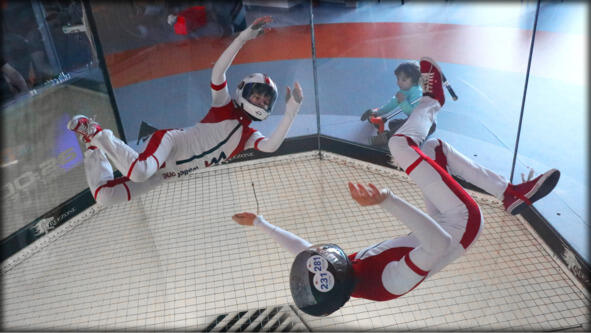 Следует немного рассказать о вертикальной четвёрке, несмотря на то что в ближайшие несколько лет вы вряд ли близко подойдёте к этой дисциплине. Это также высший класс вертикальной акробатики, спорт высших достижений, и, как правило, дети эту дисциплину не летают в силу её сложности и опасности. Скорость потока для вертикальной четвёрки применяется максимальная, поэтому есть ещё чисто физические ограничения спортсмен должен иметь достаточно веса, чтобы уметь летать вертикальную групповую акробатику на больших скоростях. Юношей и юниоров, летающих вертикальную четвёрку, в нашей стране нет в принципе. Детских команд нет и подавно. Подключать ребёнка во взрослую команду тоже не самый рациональный вариант из-за разности весов спортсменов и, как следствие, разных требуемых рабочих скоростей.