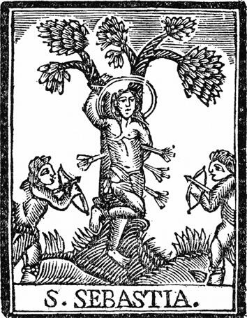 En la iconografia cristiana, Sebastià és presentat com un bell jove, amb el rostre extasiat de dolor, travessat per les fletxes duns sicaris que gaudeixen del martiri. Lequívoca imatge de la sofrença de Sebastià, amb el cos nu i travessat per les fletxes dels seus botxins, sovint ha estat causa descàndol entre el puritanisme o calvinisme, una actitud que no tan sols trobem en el protestantisme, sinó també dins el catolicisme. Cal considerar, però, que aquesta subtil imatge, que pot despertar sentiments entre pietosos i sensuals, correspon als paràmetres duna percepció demotivitat antiga, que cal entendre bé si es vol copsar el caràcter de lafectivitat a través de la història: la pietat, la compassió, la tendresa, sensacions i sentiments que han encarnat passions no sempre coincidents. Letimologia de caràcter popular de Sebastià sol ser molt liberal. Iacopo da Varazze (segle xiii) a la Llegenda àuria, un exhaustiu tractat sobre sants i altres atribolats personatges don la vena popular ha pouat la major part de la informació que en posseïm, per justificar el nom de Sebastià ens dóna uns pintorescos indicis, entre els quals aquests: «Se-bast-iannus. Aquest bast vindria de sella de muntar i el sebe, de palissada».[3] És la mateixa manera de fer, dun cert heraldisme de caràcter popular, que, si havia datorgar segell dantigor a ciutats que no en tenien, o que els semblava que no en tenien prou amb els quatre pals vermells catalans i algun castellot solitari a lescut municipal, llavors, guiant-se per una interpretació directa de la semàntica, endossaven a Sabadell una ceba, un corn a Cornellà, un moll (peix) a Mollet del Vallès i una gralla (au) a Granollers, una ala a Olot i... així quedava ben resolt el problema dels títols ciutadans.