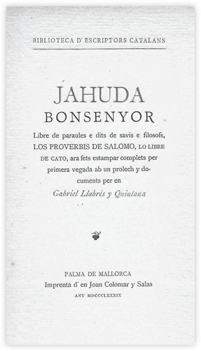 El Llibre de paraules i dites de savis i filòsofs tingué fama al seu temps, i la col·lecció apareix citada en obres posteriors i fins va ser traduïda completa al castellà al segle XV. No obstant això, no seria fins al 1889 que el bibliotecari, arxiver i lul·lista mallorquí Gabriel Llabrés leditaria de manera completa a Palma, tot adjuntant-hi un glossari i les col·leccions de màximes coetànies del Llibre de Cató i dels Proverbis de Salomó. La seva edició segueix al peu de la lletra el manuscrit nº 1.031 de la Biblioteca Nacional de Catalunya, el qual, pel fet dhaver conservat el text complet i haver estat copiat al segle XIV, simposava als altres set manuscrits dels segles XIV i XV conservats avui en diferents biblioteques com lArxiu de la Corona dAragó, lArxiu Capitular de Barcelona, la Biblioteca Nacional de España i la Bibliothèque nationale de France a París. Avui, per encàrrec de lEditorial Barcino, versionem en català actual aquest clàssic de la moralística medieval catalana tot seguint ledició de Gabriel Llabrés de 1889, amb la intenció de fer conèixer la saviesa que sempre atorga la lectura duna bella col·lecció de màximes com aquesta algunes delles ben vives i encara en ús, obra excepcional per haver estat escrita per un autor jueu en la nostra llengua catalana que, de totes passades, també era la seva.