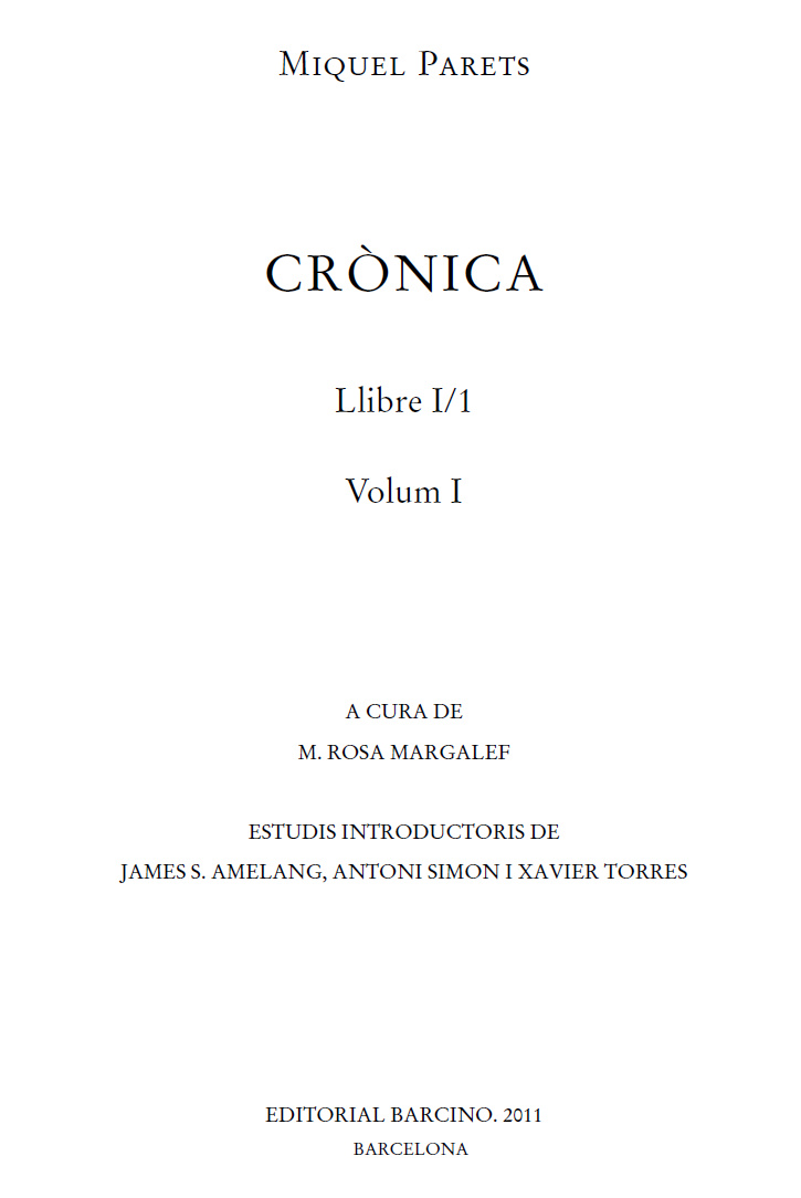 © de ledició i la introducció, M. Rosa Margalef, 2011 © dels estudis introductoris, James S. Amelang, Antoni Simon i Xavier Torres, 2011 Reservats tots els drets daquesta edició:EDITORIAL BARCINO, S. A. www.editorialbarcino.catEdició núm. 814