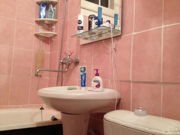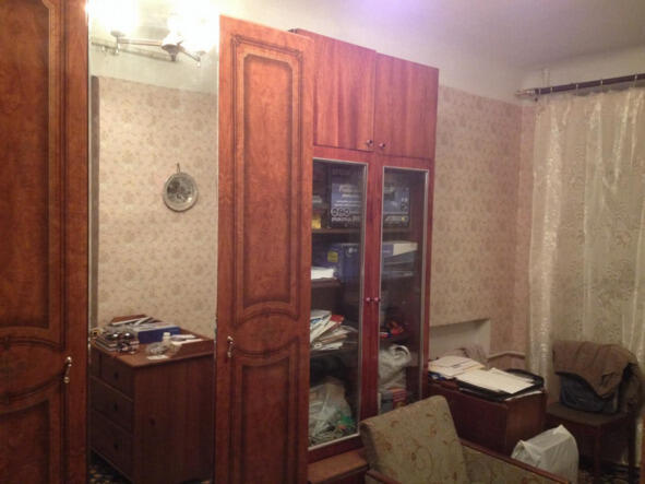 Однокомнатная квартира с окнами, выходящими во двор. Комната 18 метров квадратных. Кухня около 5 метров квадратных. Ванна и туалет совмещены.
