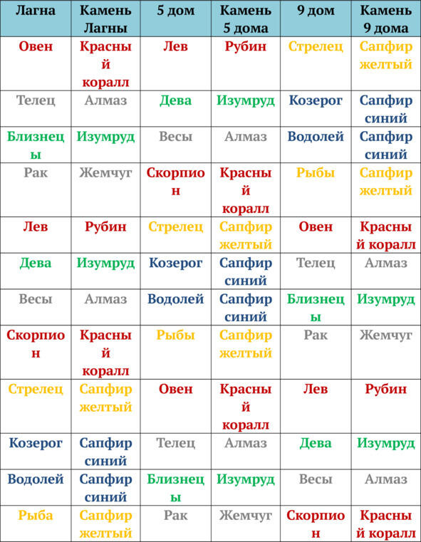 А также, когда планеты в первом, пятом, девятом домах, управители первого дома (лагнеша), пятого и девятого дома (камни удачи).